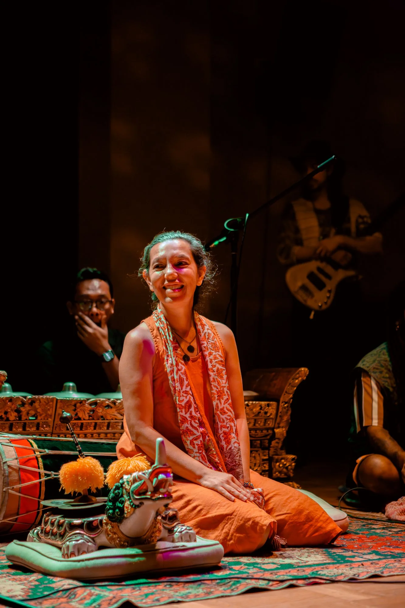 Ria Soemardjo is a Naarm based musician with a passion for intercultural collaborations across diverse genres and artforms. She creates and performs music for independent contemporary dance and theatre in Australia and Asia. A sought-after collaborator, her evocative soundscapes are often performed live using voice, gamelan, frame drums and her own hand-crafted clay flutes and drums. Her distinct, haunting vocal style reflects her Australian/Javanese heritage and a deep appreciation for Balinese and Javanese gamelan traditions. Ria has been a member of Gamelan DanAnda since its inception and has worked with the core leaders for over 20 years. She continues to perform Javanese vocal repertoire around Australia.